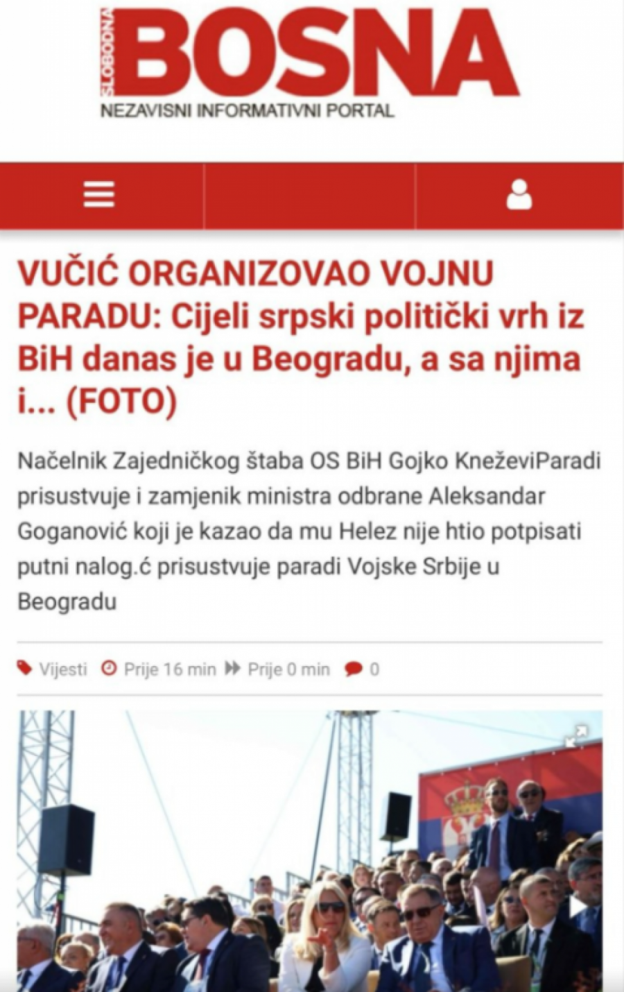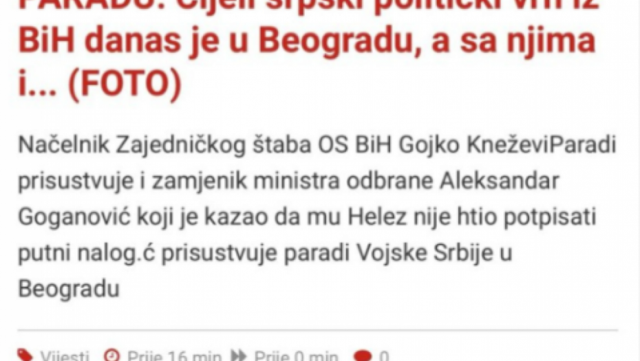 Takođe, o paradi su pisali i neki mediji iz Bosne i Hercegovine, no, ponovo sa ciljem diskreditacije ove impresivne demonstracije kapaciteta Vojske Srbije.