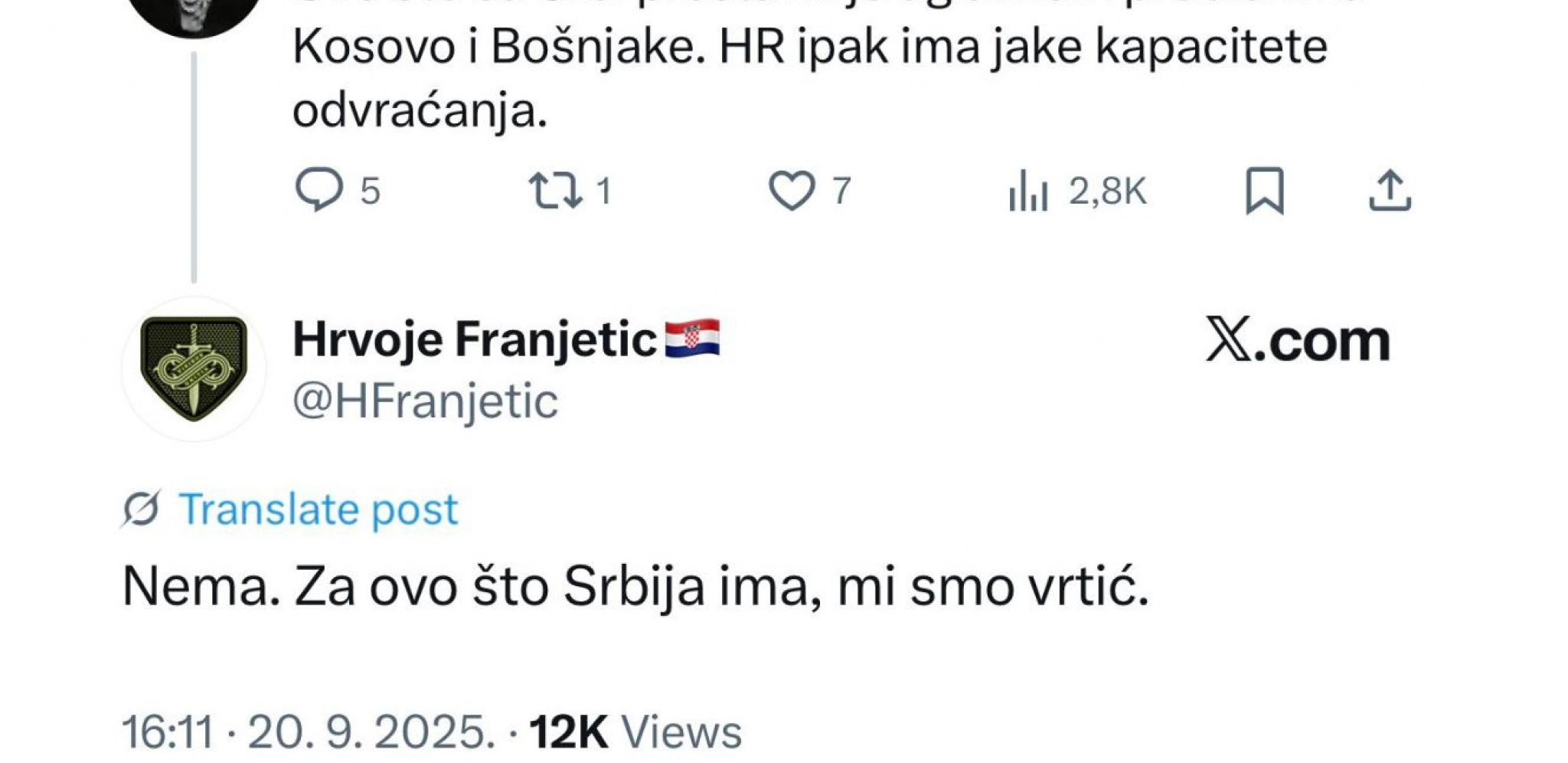 "Vojska Srbije je napredovala i daleko otišla. Pogledao paradu i naoružanje. Baš zbog toga mogu reći da je opremanje, naoružavanje Vojske Hrvatske cirkus. Ovu državu vode g***a koja ne znaju šta je rat. Ta g***a daju novac krm**i Obuljen koja još usput razara kulturu."