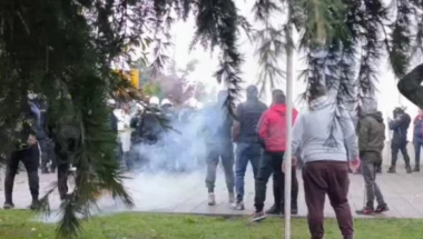 Tamo je snimljen stravičan napad, blokaderi kamenuju narod koji je ustao protiv blokada. Osim toga, oni ih sramno psuju i napadaju.