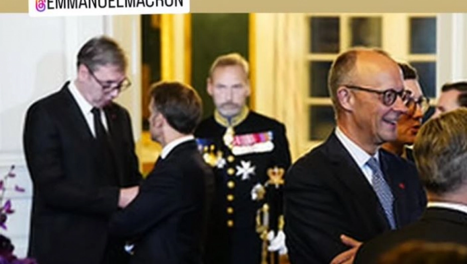 VUČIĆ NA VEČERI KOJU ORGANIZUJU DANSKI KRALJ I KRALJICA Predsednik Srbije se sreo sa Makronom