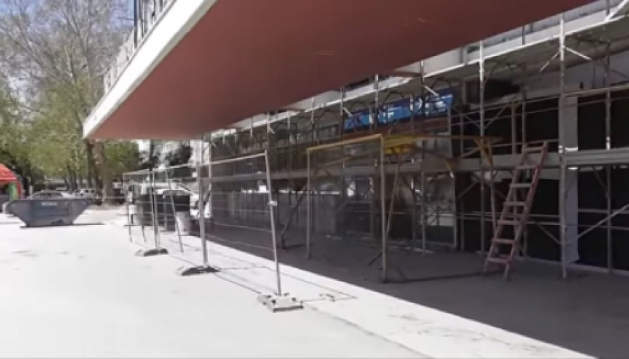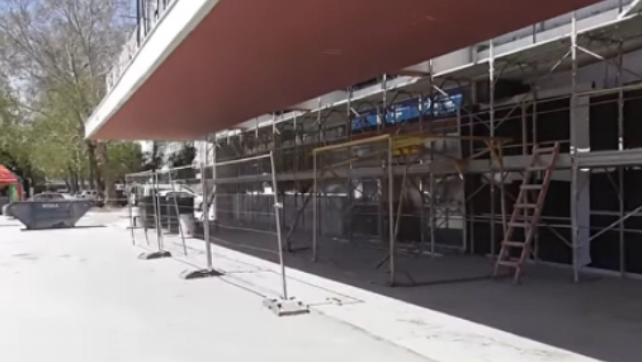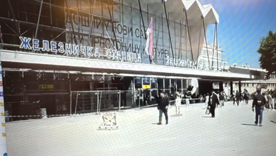 Na snimku se vidi kako putnici na Železničkoj stanici Novi Sad prolaze ispod nadstrešnice koja se rekonstruiše u skladu sa uslovima Zavoda za zaštitu spomenika, i ulaze u glavni hol gde kupuju karte.