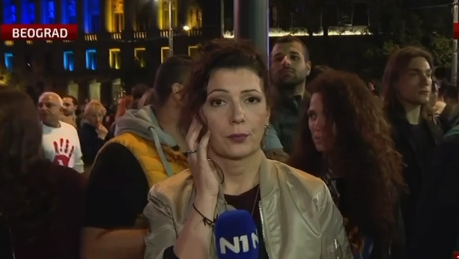 "Meni se čini da je ova druga grupa građana makar sa oove pozicije sa koje stojim, koja je okupljena ispred skupštine brojnija i da se sve više povećava", rekla je uživo novinarka sa opozicione N1.