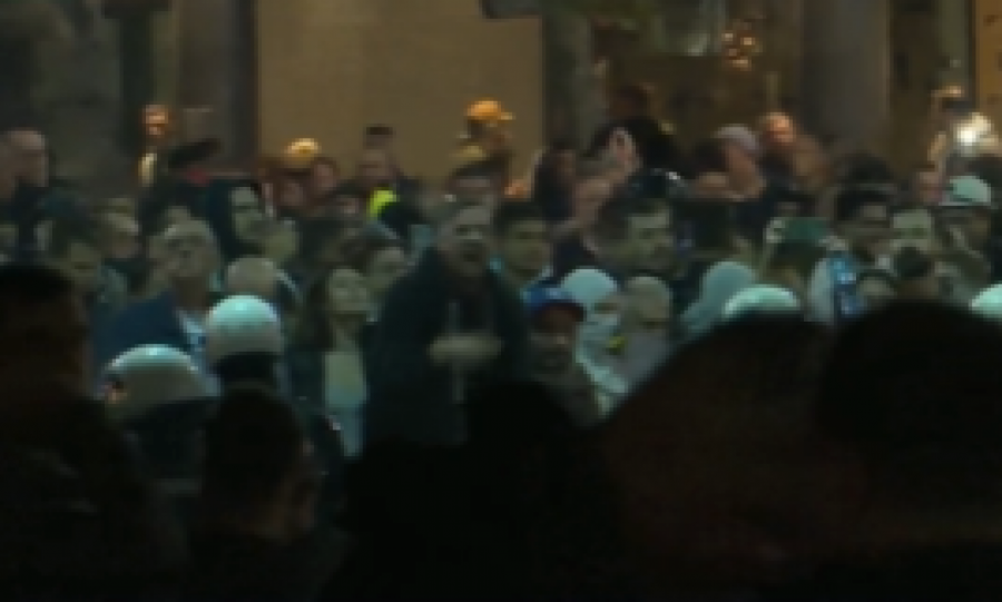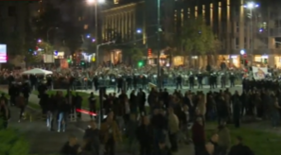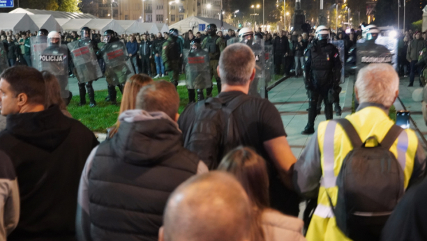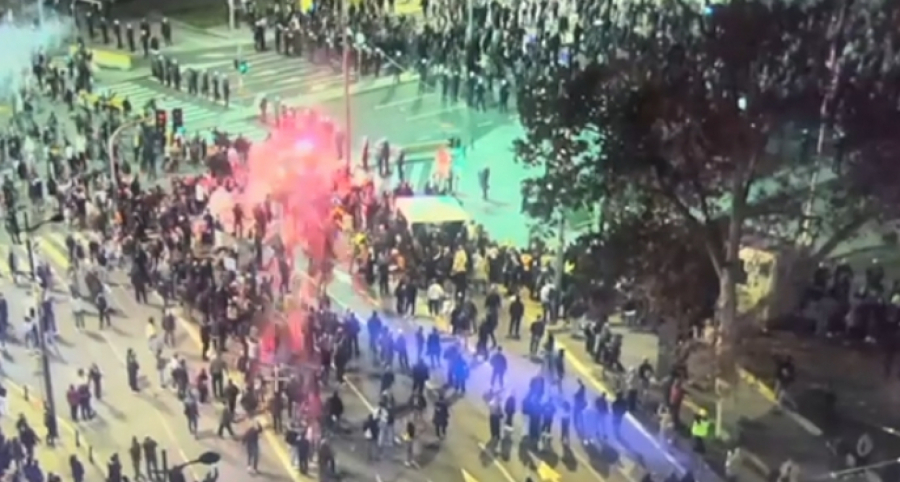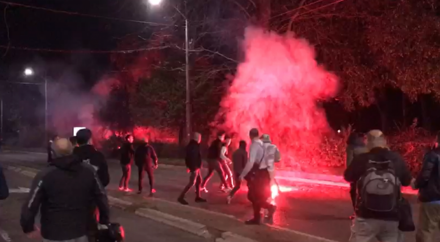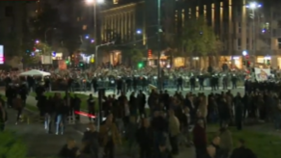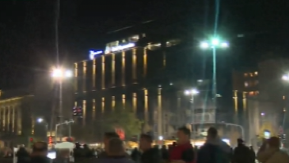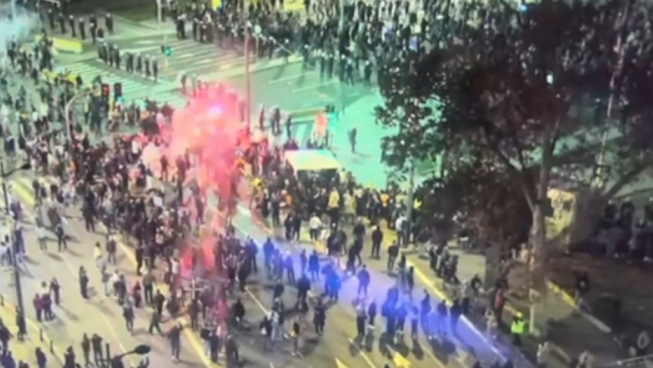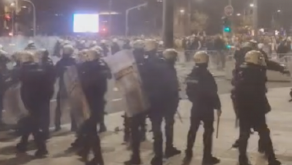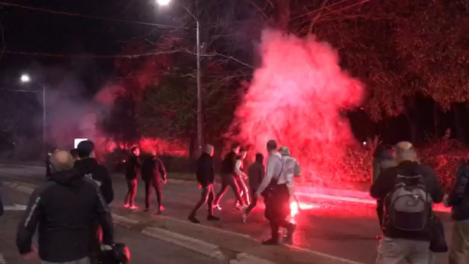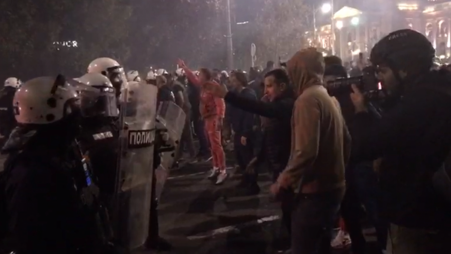 Letele su flaše, baklje, topovski udari. Povređen je i jedan policajac usled dejstva "topovskog udara", prema policijskom saopštenju.