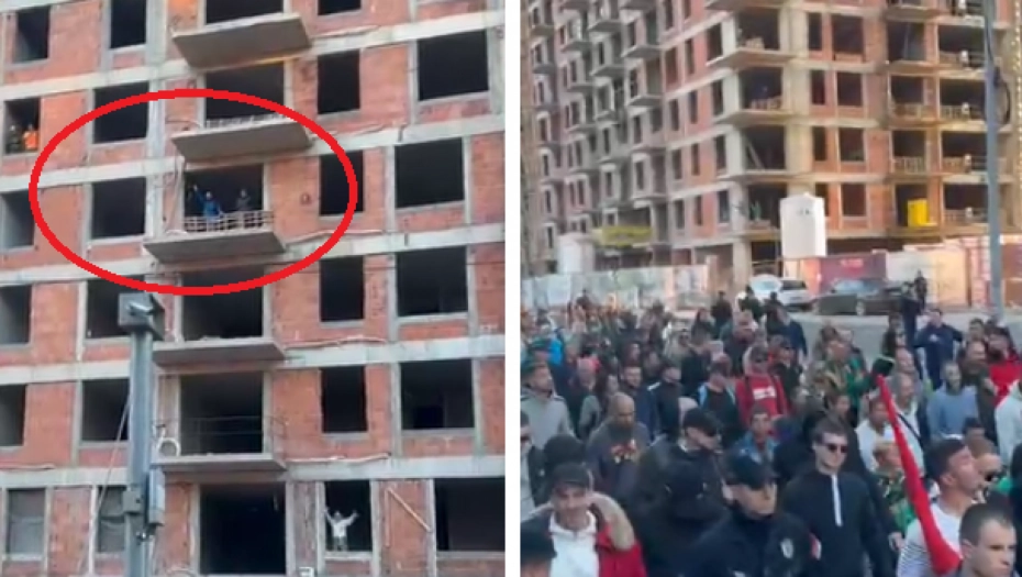 SVI GLEDAJU ŠTA RADE OVA DVA RADNIKA DOK PROLAZE SRBI SA KiM Stali na susednu zgradu i... PORUKA JE JASNA