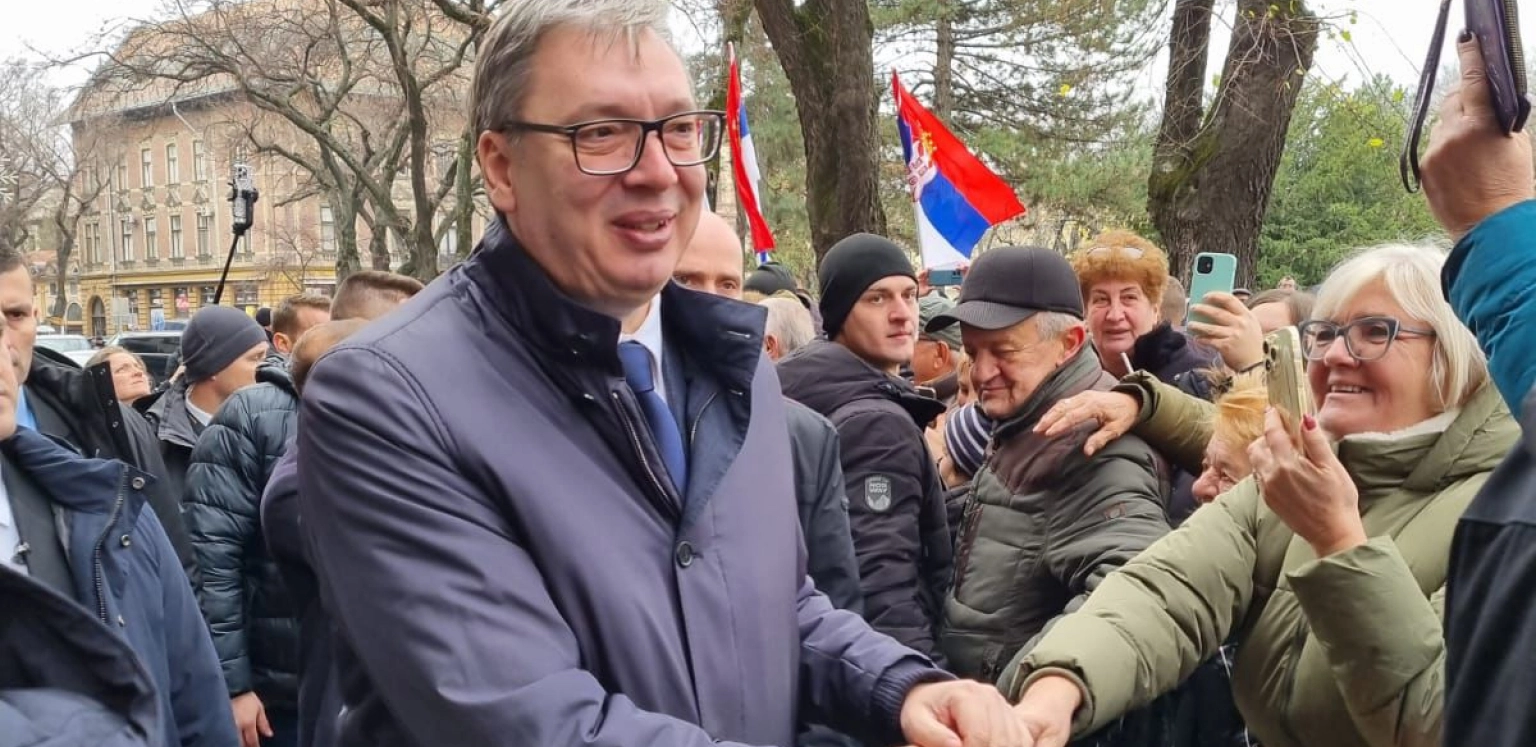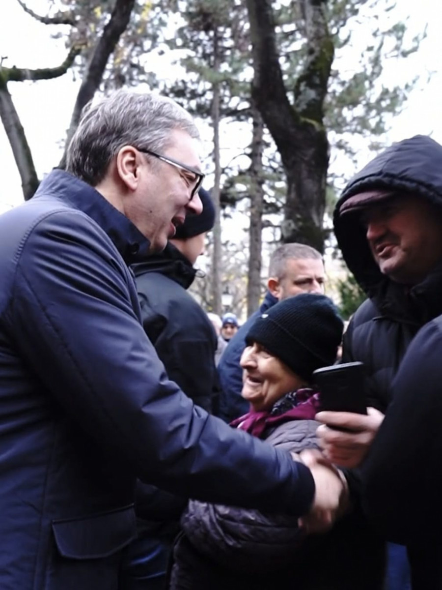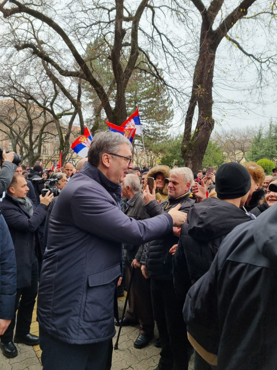 Predsednik je izdvojio vreme da im otpozdravi, rukuje se, a sa nekima i zagrli i fotografiše. Oni su skandirali "predsedniče", "živela Srbija", "živeo Vučić" i "Aco Srbine".