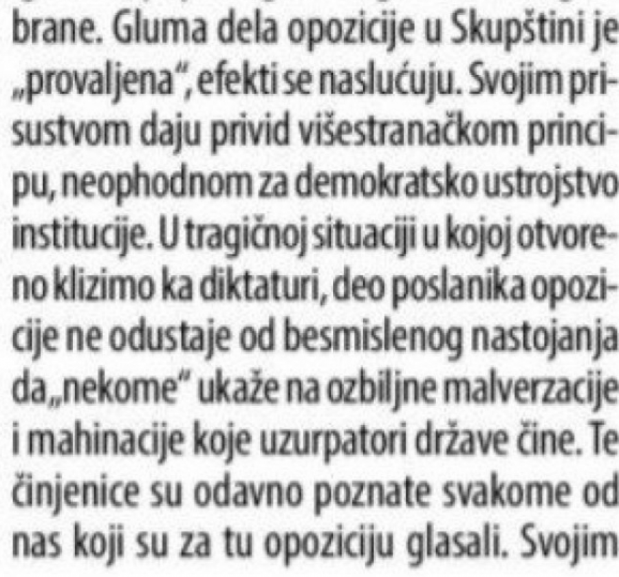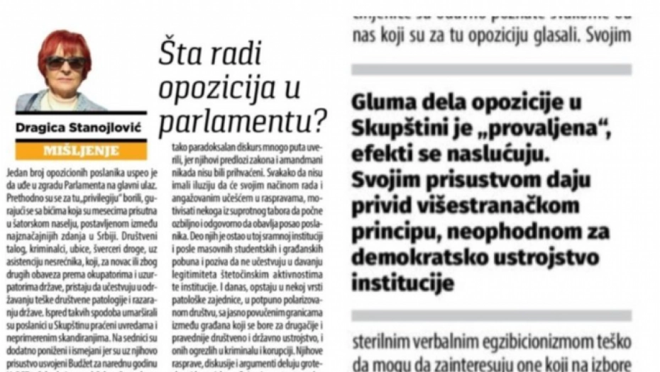 ''PROVALJENI STE, GLUMITE U SKUPŠTINI'' Blokaderski ''Danas'' o opoziciji