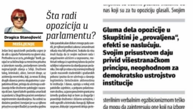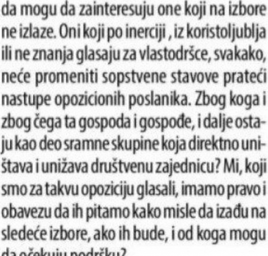 Dragica Stanojlović u svojoj analizi zaključuje da ''Danas'' kritikuje deo opozicije.