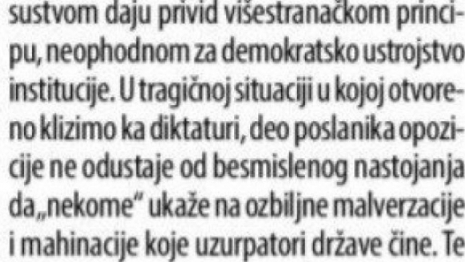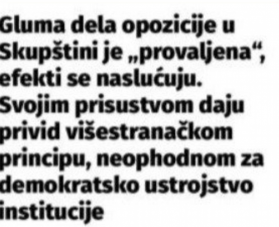 - Gluma pojedinih opozicionara u Skupštini je razotkrivena, a posledice se već naslućuju. Samim prisustvom stvaraju privid višestranačja, koje je ključno za demokratski izgled institucija - navela je.