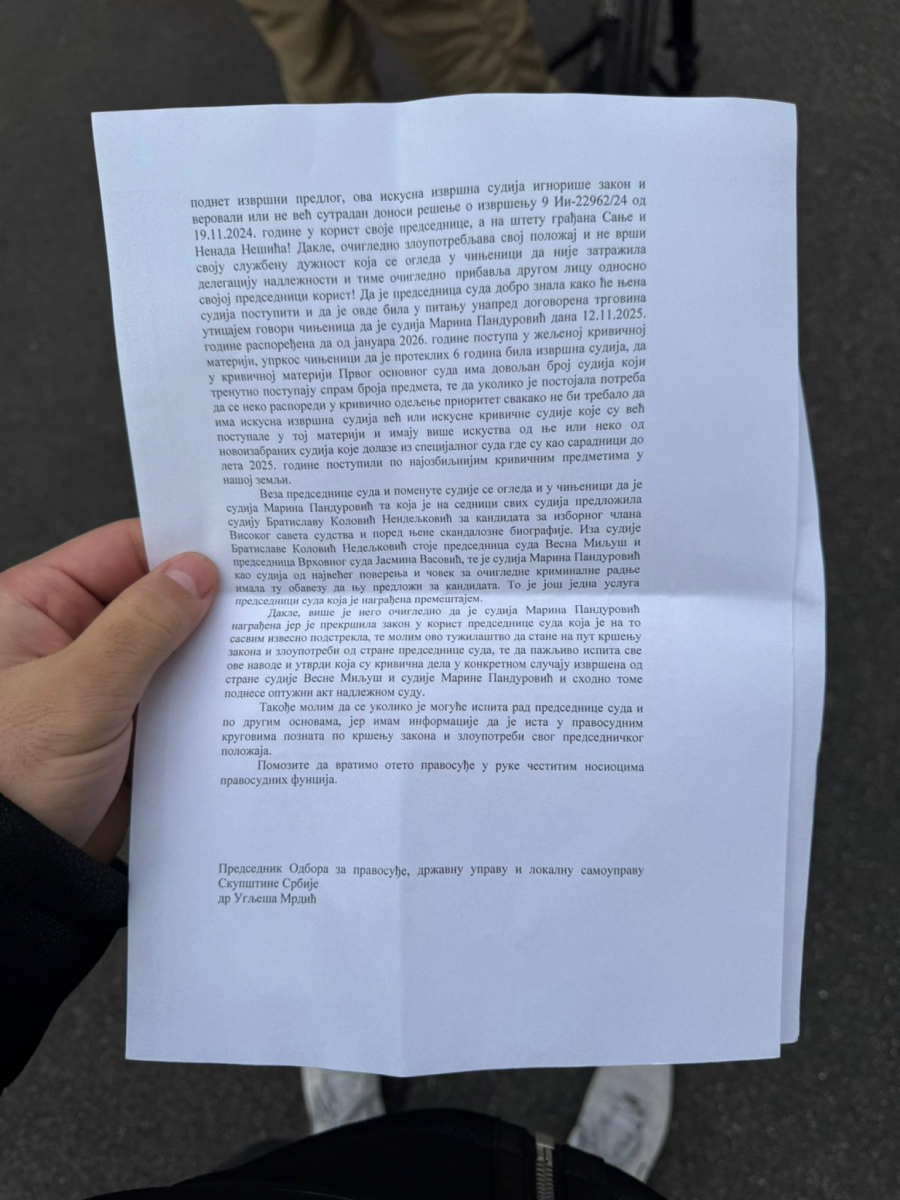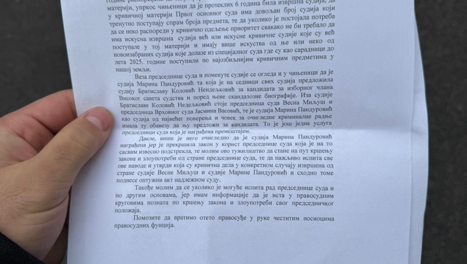 On je zamolio da se ispita rad predsednice Prvog osnovnog suda.