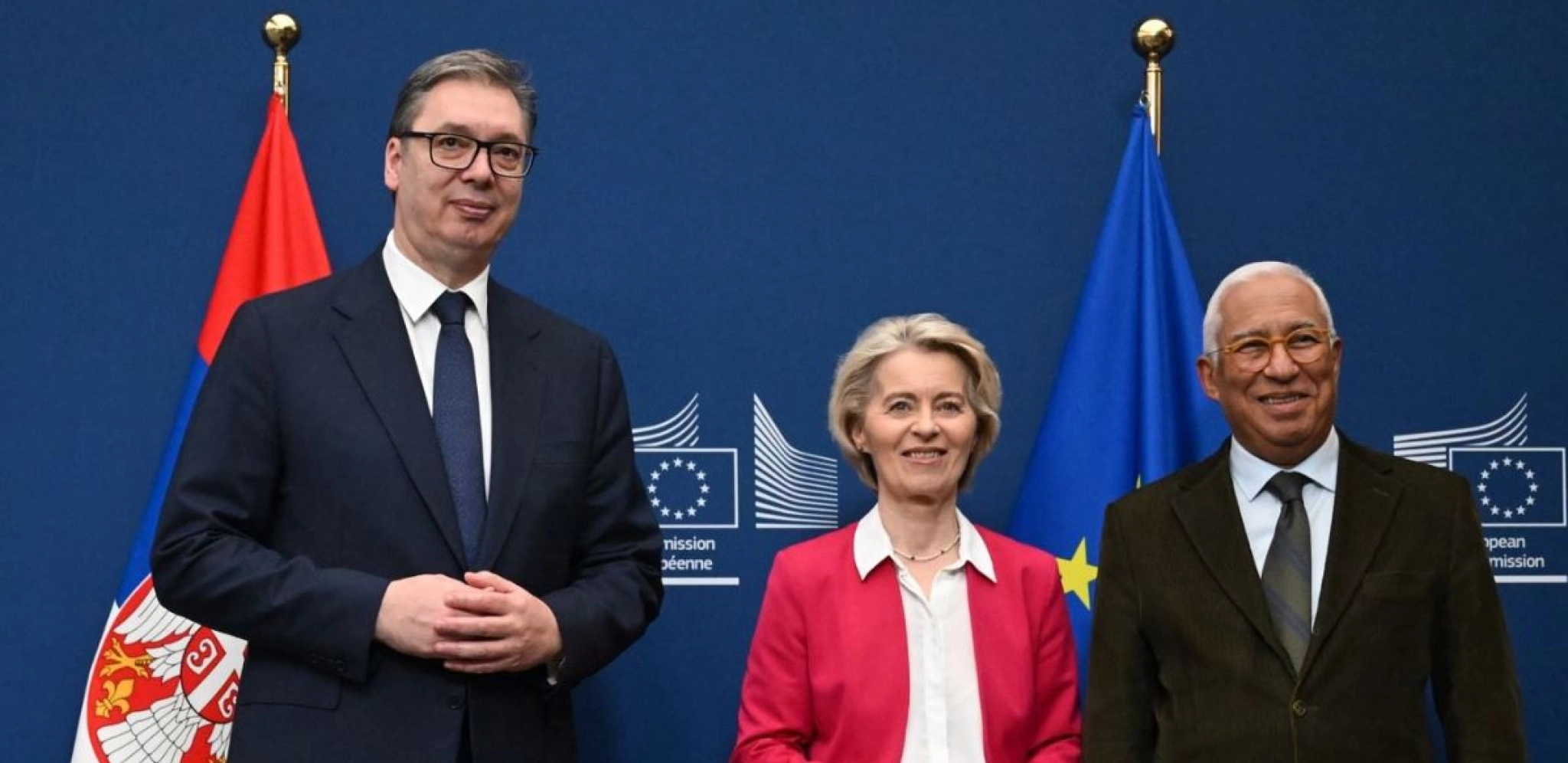 Vučić je juče, uoči puta u Brisel, najavio da će na sastanku sa Ursulom fon der Lajen predložiti da se sve države kandidati Zapadnog Balkana prime u Evropsku uniju zajedno, kao paket, kako bi se izbegle nove podele i zastoj u procesu proširenja.