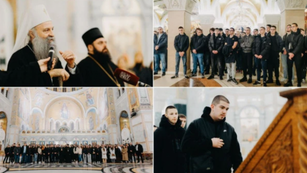 PATRIJARH PORFIRIJE BLAGOSLOVIO UČENIKE TEHNIČKE ŠKOLE "NIKOLA TESLA" IZ VUKOVARA Đaci u poseti Srbiji