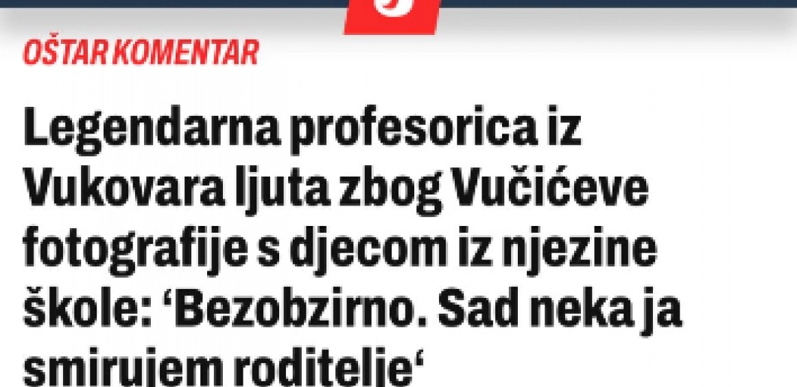 Istog dana hrvatski "Jutarnji list" objavio je tekst sa naslovom: Legendarna profesorka iz Vukovara ljuta zbog Vučićeve fotografije s decom iz njene škole: "Bezobzirno. Sad neka ja smirujem roditelje".