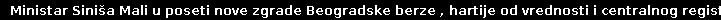 Nakon obilaska nove zgrade na Prokopu, u kojoj su počele sa radom Beogradska berza, Komisija za hartije od vrednosti i Centralni registar hartija od vrednosti, Mali je naglasio da je Srbija po prvi put objedinila rad tri najvažnije institucije domaćeg tržišta kapitala na jednom mestu, čime su stvoreni uslovi za brži i efikasniji rad.