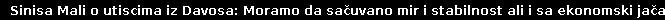 -U Davosu je okupljen veliki broj svetskih lidera, političara, finansijera i bankara, a ono što prožima sve sastanke i govore jeste neizvesnost i velike promene u svetu. Posebno kada pogledamo aktuelnu situaciju u Evropi, rat u Ukrajini i problemi ka istoku, kao i izazove sa Grenlandom i najave novih carina od strane američke administracije – jasno je da se Srbija nalazi u kompleksnom okruženju. Upravo zbog toga je važno da predsednik Vučić bude prisutan i lično sagleda situaciju, sasluša sve strane i donese najbolje odluke za našu zemlju - istakao je ministar finansija Siniša Mali.