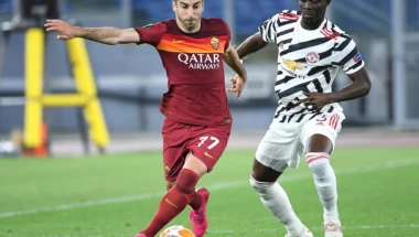 31. minut: Mhitarjan je glavom promašio praznu mrežu sa sedam metara, pošto je golman De Hea izleteo u prazno.