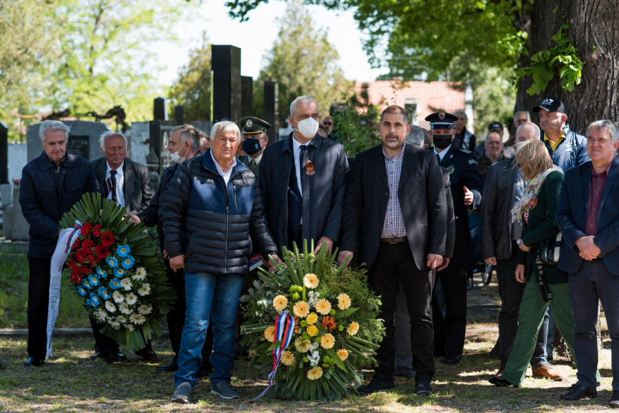 Nakon polaganja venaca na Spomenik žrtvama fašizma, venci su položeni i na Spomen-kompleks palim crvenoarmejcima na Pravoslavnom groblju u Dudovoj šumi.