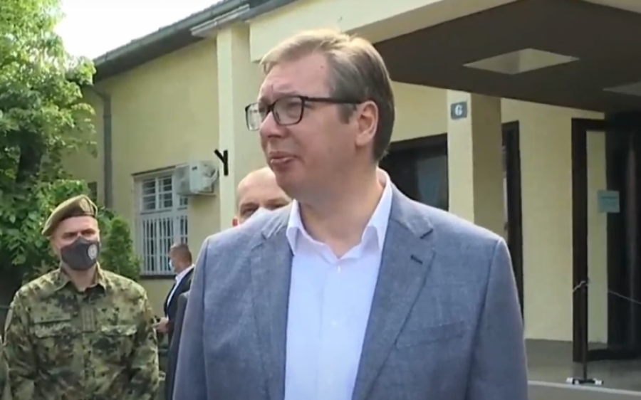 Predsednik Srbije Aleksandar Vučić obišao punkt za vakcinaciju pripadnika garnizona Beograd i članova njihovih porodica u prostoru kasarne "Dedinje".