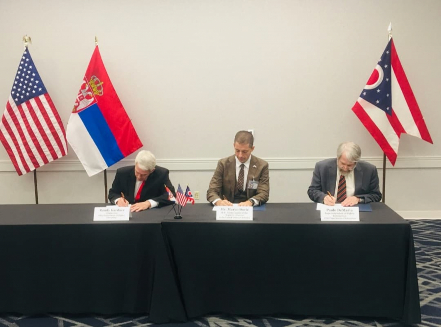Kako je saopštila ambasada Srbije u Vašingtonu, svečanoj ceremoniji potpisivanja prisustvovao je general-major Džon Heris, komandant Nacionalne garde Ohaja, sa kojom Srbija već 15 godina aktivno sarađuje na vojnom planu.
