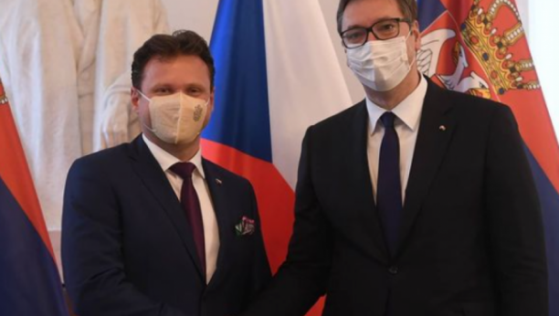 Predsednik Republike Srbije Aleksandar Vučić sastao se sa predsednikom Poslaničkog doma Parlamenta Češke Republike Radekom Vondračekom i tom prilikom upisao se u Knjigu počasnih gostiju Poslaničkog doma.