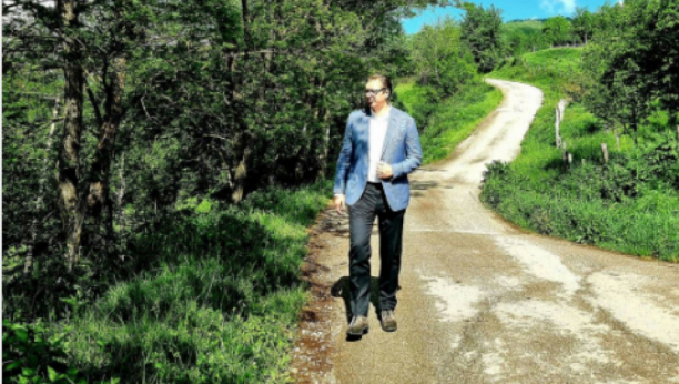 Na putu ka Prijepolju, predsednička kolona je zastala i napravljena je pauza, a Vučić je to iskoristio za kratku šetnju.