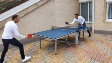Nakon napornog prepodneva, iskoristio je kratku pauzu, pa je sa Momirovićem odigrao partiju stonog tenisa.