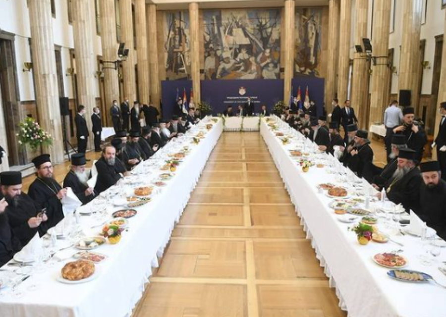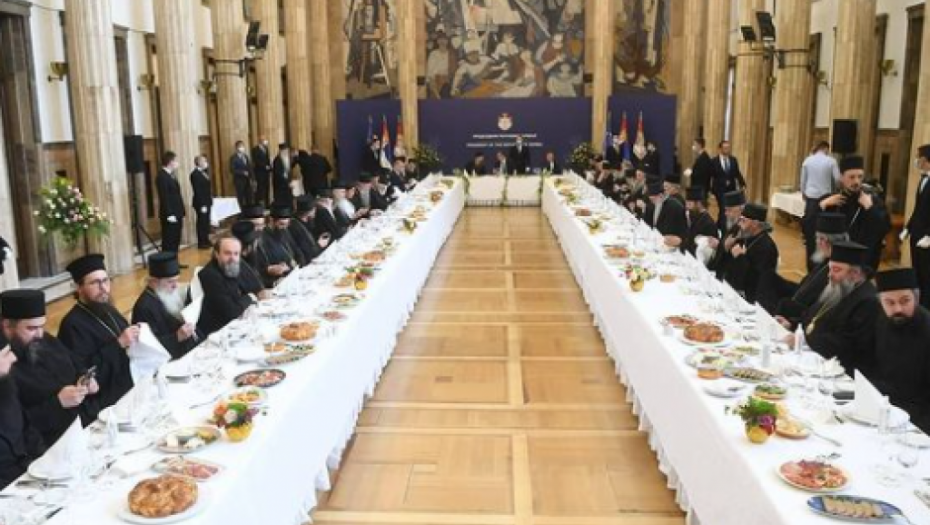 Predsednik Republike Srbije Aleksandar Vučić ugostio je na ručku Njegovu svetost patrijarha Porfirija i episkope, učesnike Sabora Srpske pravoslavne crkve.