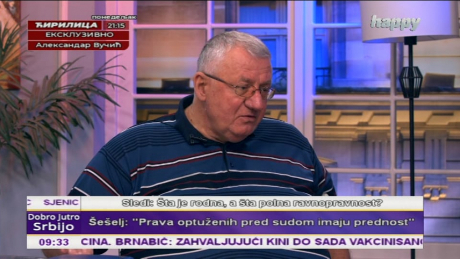 Na konstataciju voditelja Božidara Gutića Gute da je šteta što mnogi antivakseri ne razmišljaju na taj način, Šešelj je u svom stilu izvređao antivaksere.