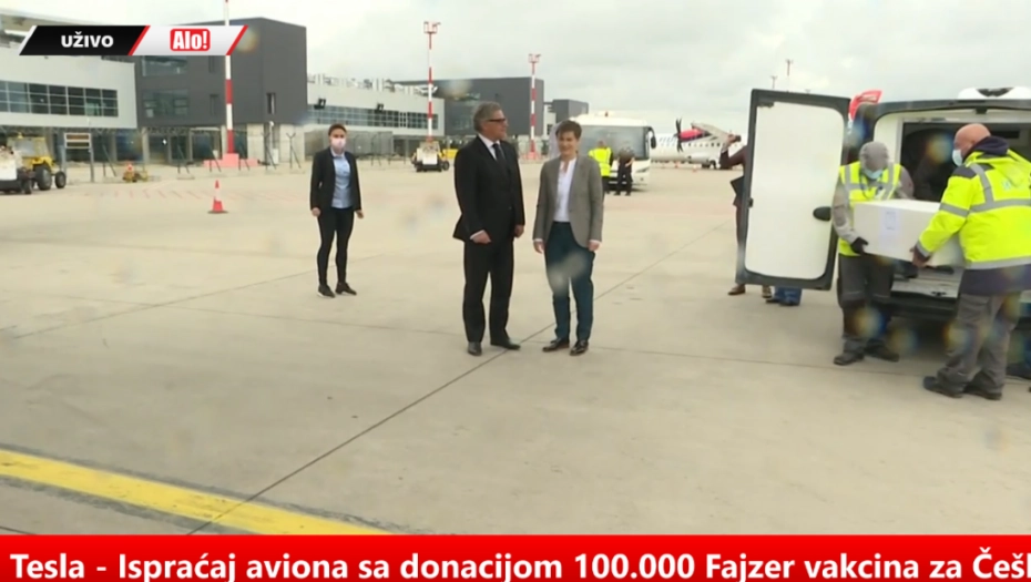 PREMIJERKA BRNABIĆ ISPRATILA AVION SA VELIKOM DONACIJOM 100.000 Fajzer vakcina na poklon građanima Češke od Srbije (VIDEO)
