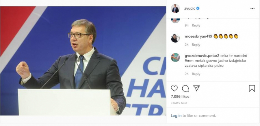 Na instagram profilu predsednika Srbije Aleksandra Vučića javno je upućena užasna pretnja, u kojoj se navodi da će biti ubijen.