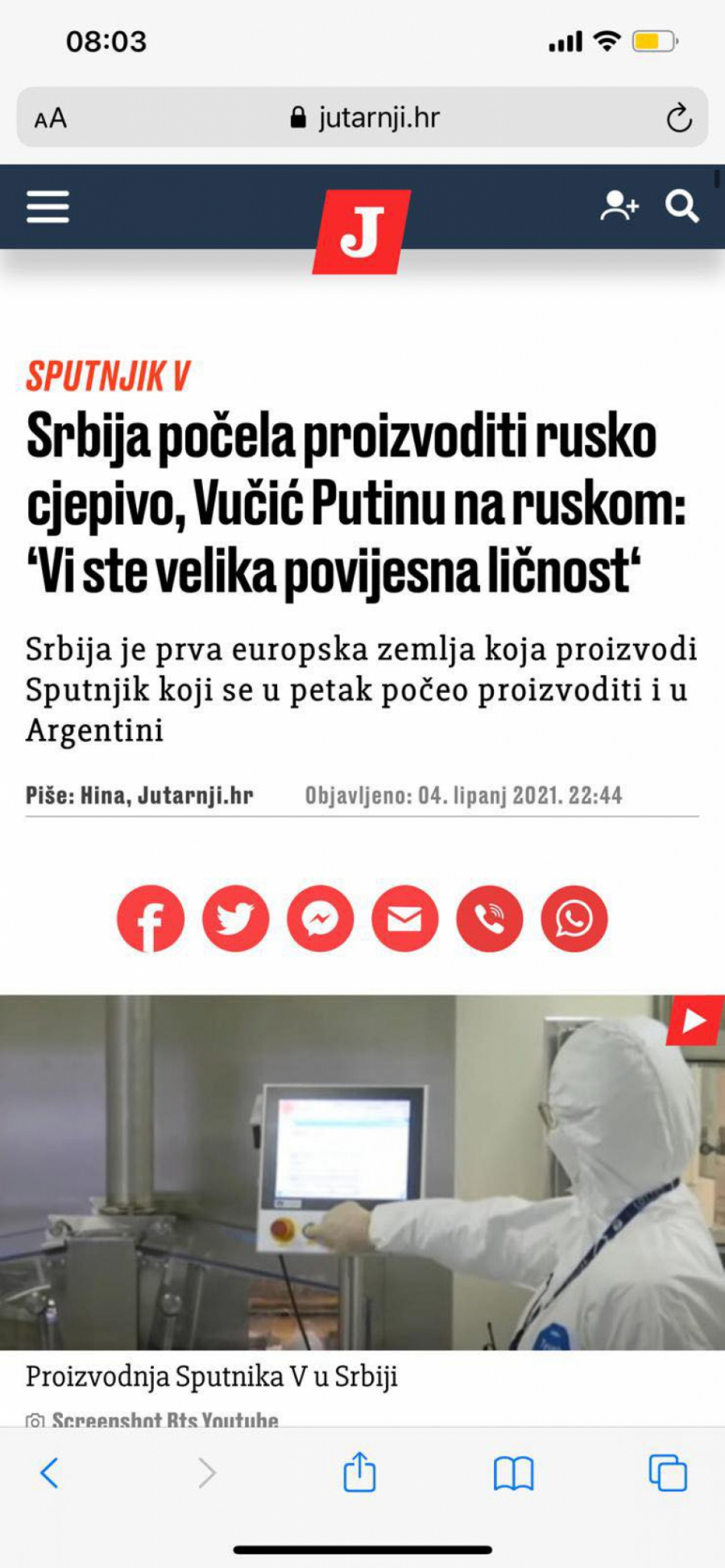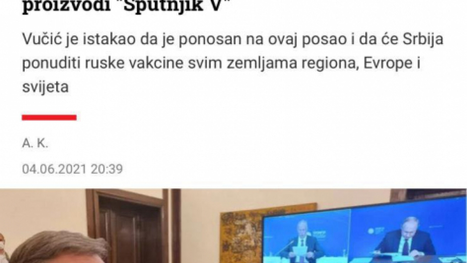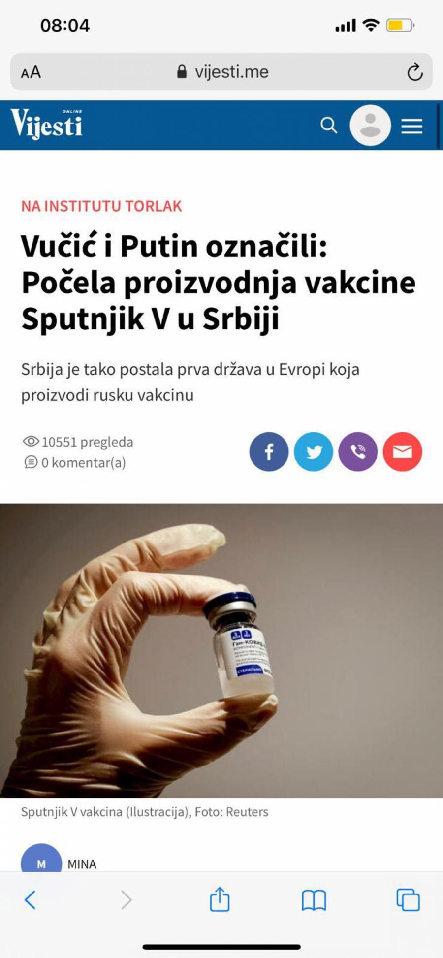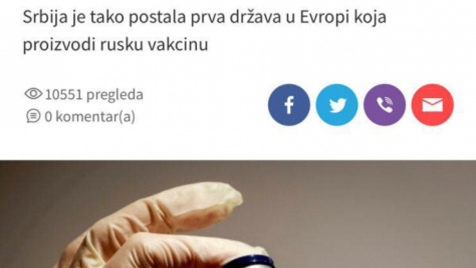 Bravo i hvala Rusiji što nam je omuogućila i pomogla da pokrenemo sopstvenu prozvodnju Covid vakcina.
