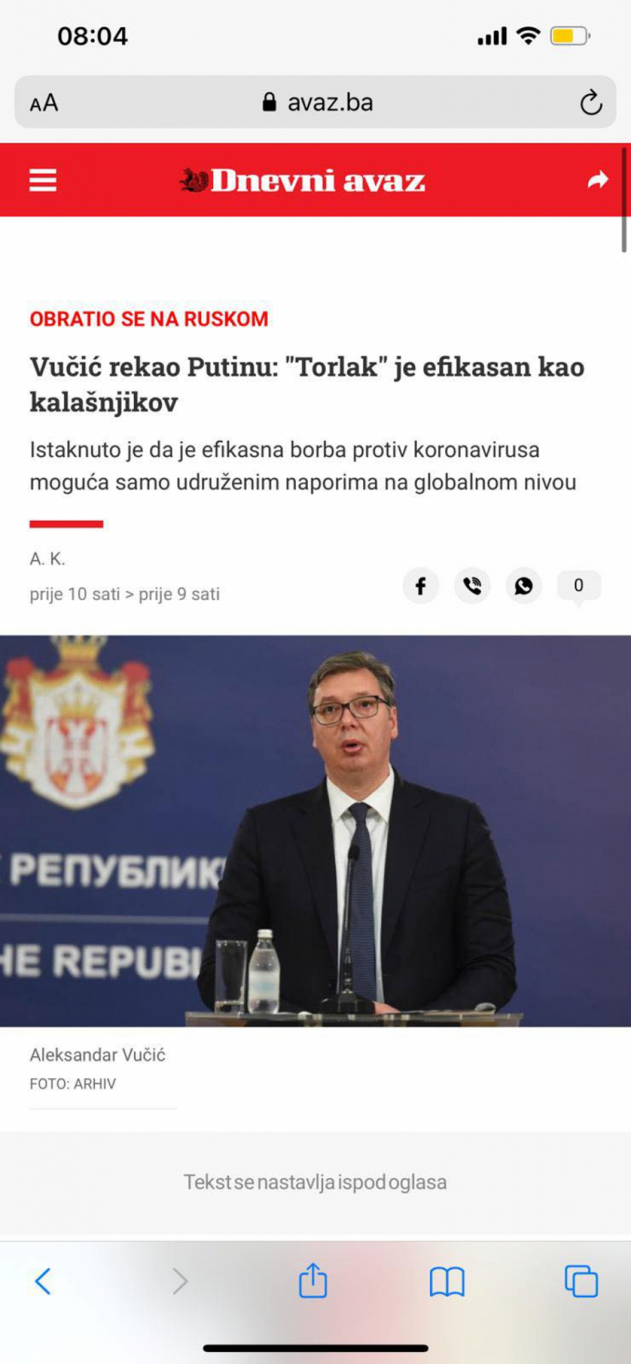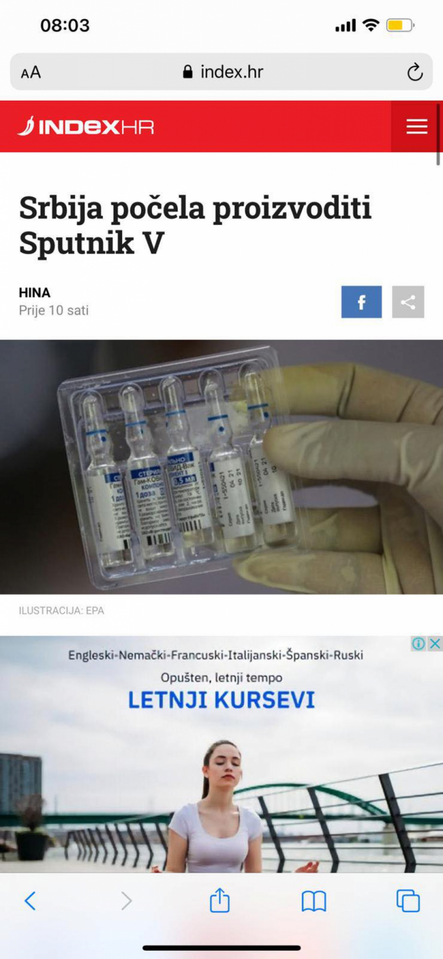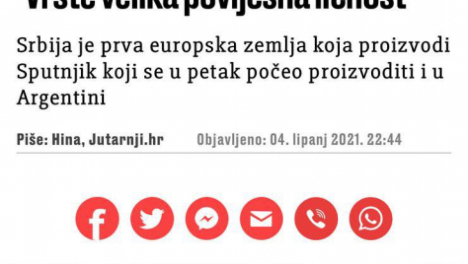 Bravo i hvala Rusiji što nam je omuogućila i pomogla da pokrenemo sopstvenu prozvodnju Covid vakcina.
