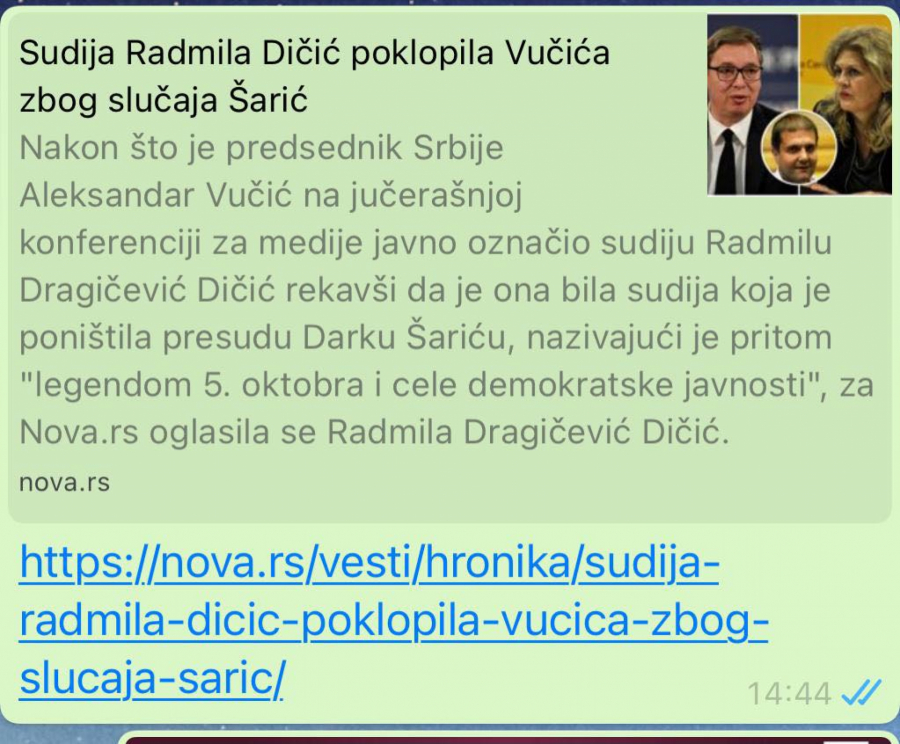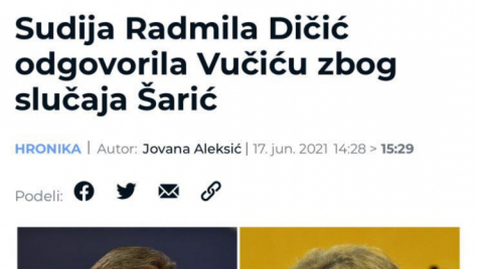 Naime, portal Nova S je izmislio reči predsednice veća i sudije izvestioca Radmile Dragičević Dičić koja je samo izjavila da je veće postupalo po zakonu i da je na osnovu poštovanja zakona petočlano veće donelo odluku.