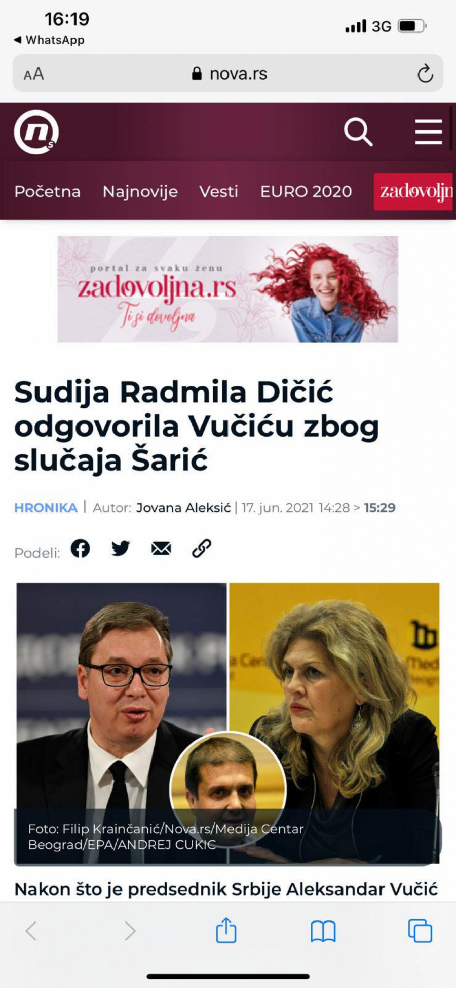 PORTAL NOVA S BRZINOM SVETLOSTI MENJA NASLOVE Uvlače u problem sudiju koja je bila predsednik veća kada se odlučivalo o slučaju Šarić!