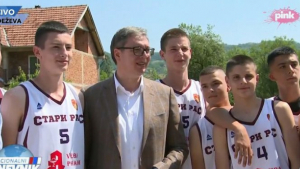 - Bravo momci, trenirajte i radite. Nemojte da vam pričaju i da dozvolite da ih slušate da ne trenirate po suncu, kiši, snegu. Trenirajte, Srbija je zemlja talentovanih sportista - istakao je predsednik u razgovoru sa mladim košarkašima u Novom Pazaru sa kojima se potom slikao.