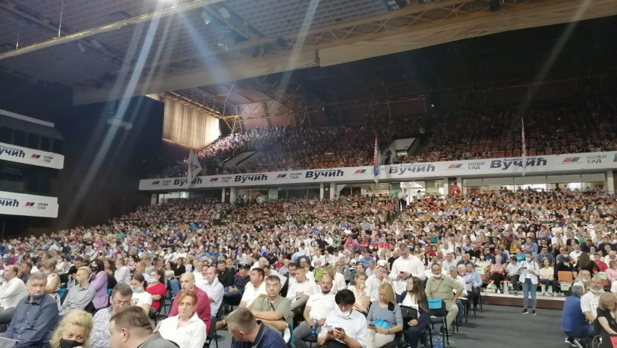 Prepuna hala "Spens" uz veliku podršku građana Srbije prema odgovornoj politici sadašnje vlasti na čelu sa Vučićem u daljoj borbi za sigurnu i bolju budućnost naše Srbije i svih nas.