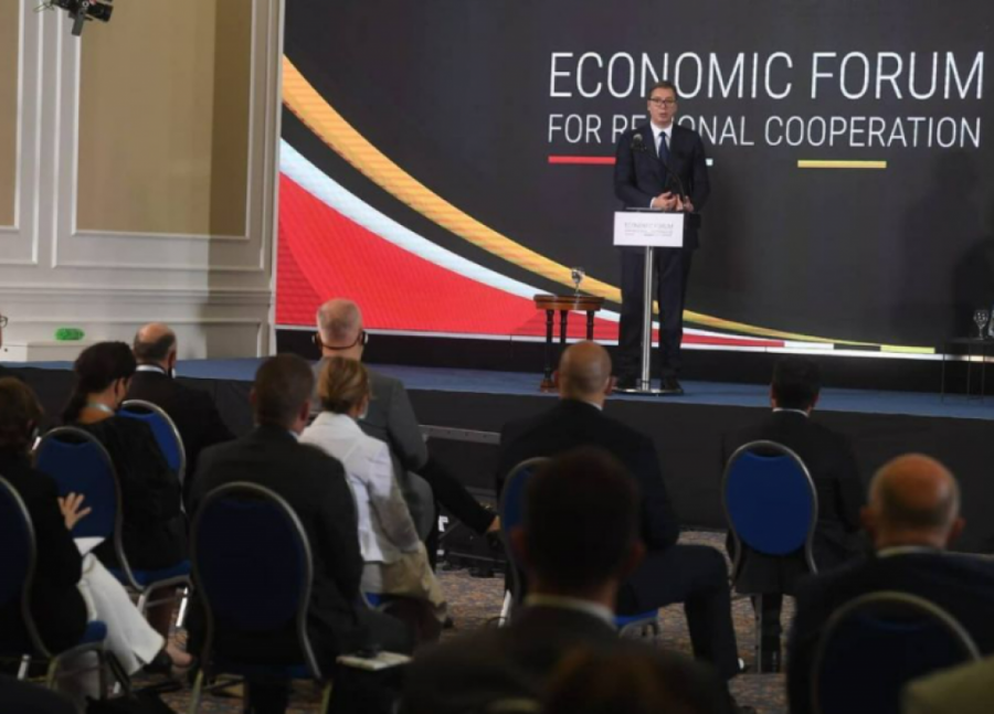 Predsednik Srbije Aleksandar Vučić sa premijerima Severne Makedonije Zoranom Zaevom i Albanije Edi Ramom učestvuje na Ekonomskom forumu za regionalnu saradnju u organizaciji privrednih komora Republike Srbije, Republike Severne Makedonije i Republike Albanije.