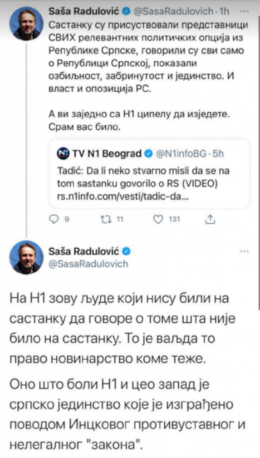 Na N1 zovu ljude koji nisu bili na sastanku da govore o tome šta nije bilo na sastanku. To je valjda to pravo novinarstvo kome teže.
