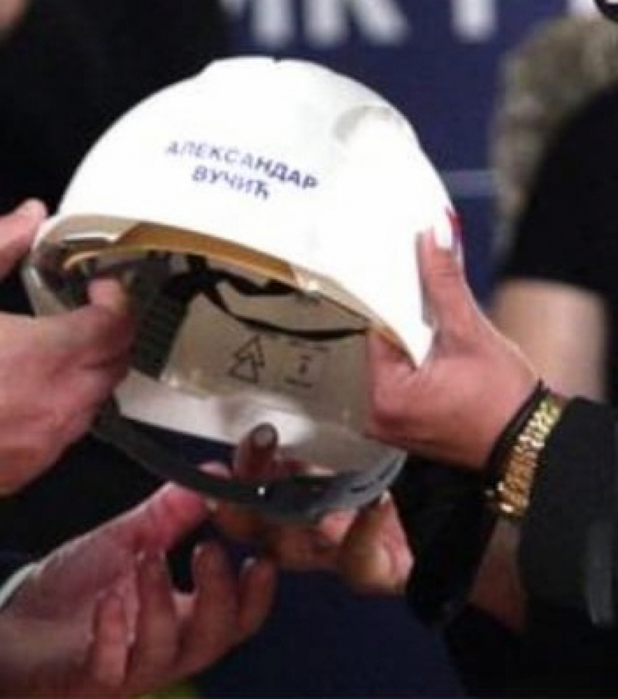Da to nije istina, govori poklon koji je namenjen predsedniku Vučiću, a u pitanju je šlem na kojem je ispisano njegovo ime.