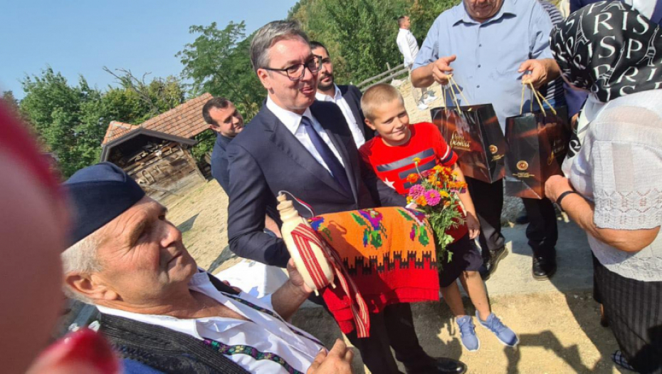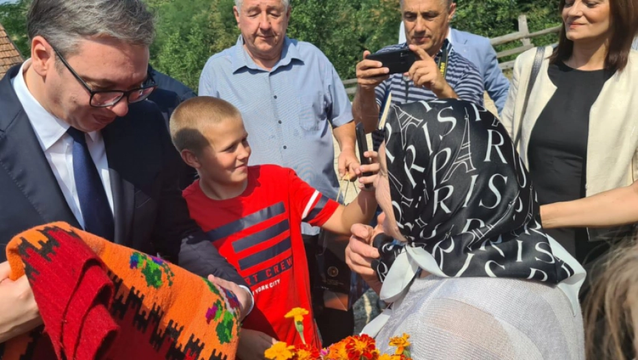 Aleksandar Vučić dobio je na poklon ćilim koji je baka Dobrila ručno tkala.