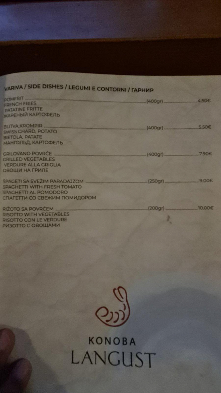 Za glavno jelo u ovom restoranu potrebno je izdvojiti od 2000, pa do preko 6000 dinara. A gde je još prilog, salata i piće čije se cene kreću u proseku od 500 do 2000 dinara.