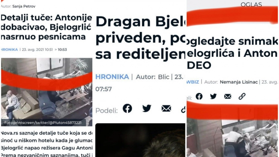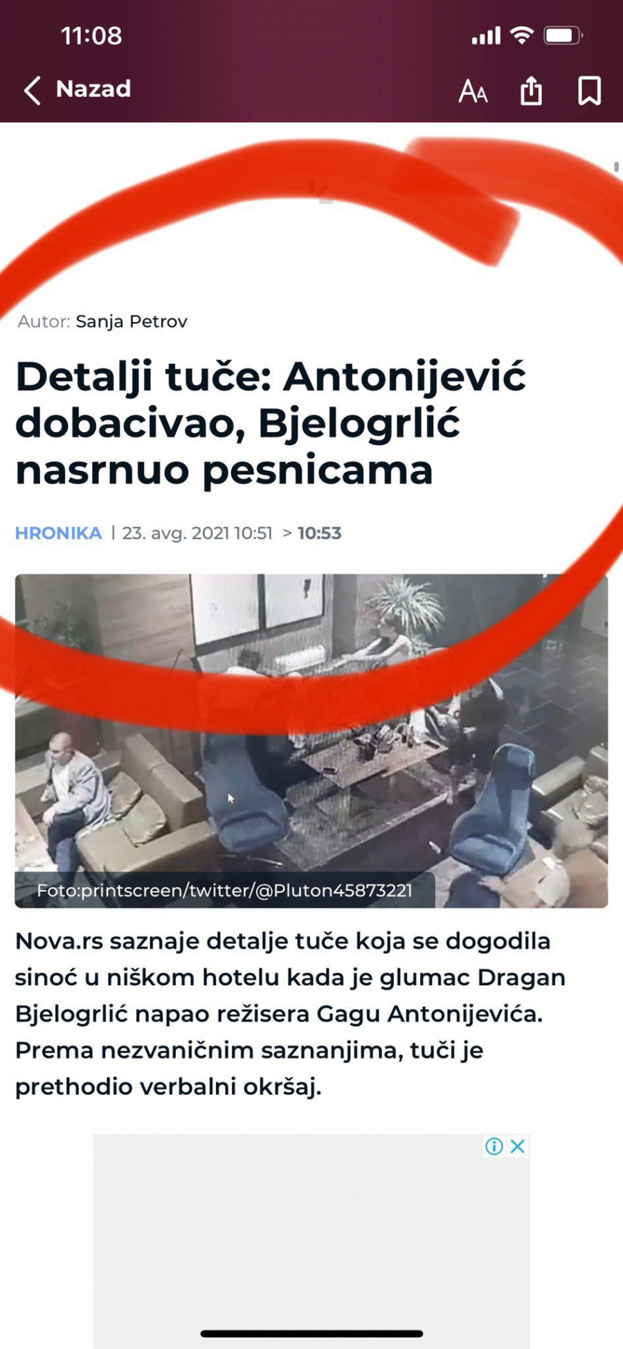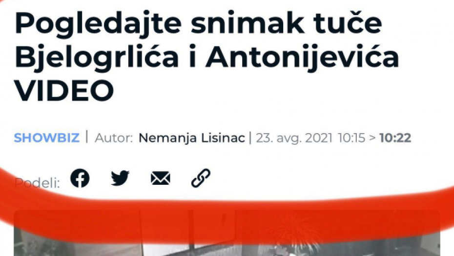 Iako se na snimku prebijanja Gage Antonijevića jasno vidi da Bjelogrlić uopšte nije ni blizu da bi mu neko mogao dobacivati, Đilasov portal namerno izmišlja i obmanjuje javnost. I još bitnije, Bjelogrlić prebija Antonijevića, 4 puta ga udara pesnicom u glavu! Nema tuce dvojice ucesnika, vec Bjelogrlić mučki prebija starijeg čoveka koji sedi i u položaju je iz kojeg ne može da se brani.