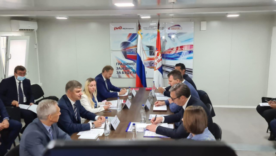 Uoči ceremonije obeležavanja završetka građevinskih radova na deonici Stara Pazova - Novi Sad, predsednik Aleksandar Vučić sastao se danas u Čortanovcima sa predstavnicima ruske kompanije RŽD Internešnal.