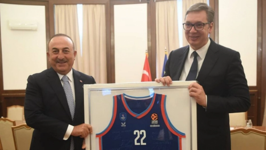 Prilikom susreta Čavušoglu je Vučiću poklonio dres košarkaškog kluba Anadolu Efes.