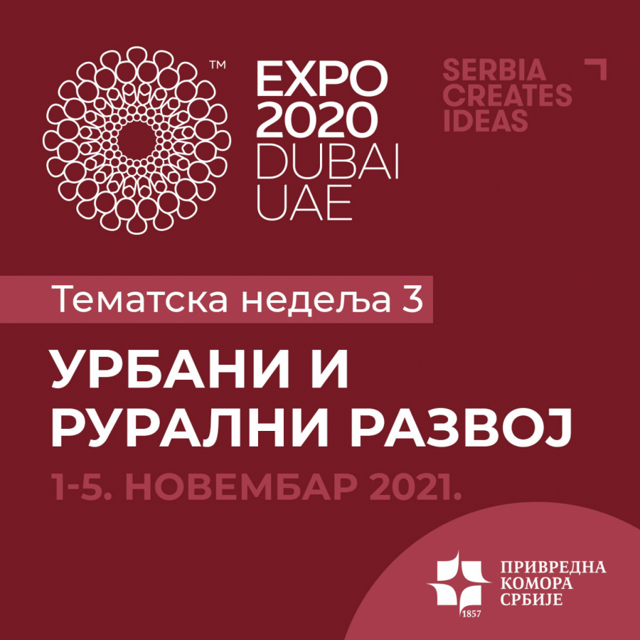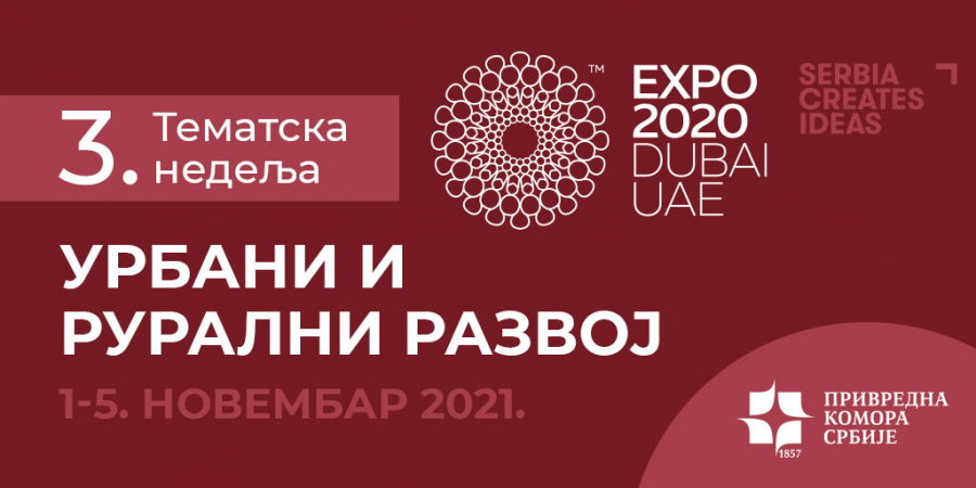 Domaća građevinska operativa, investitori, projektanti, izvođači radova, predstavnici kompanija iz komunalnog sektora, predstaviće svoje potencijale, projekte i inovativna rešenja u nedelji „Urbanog i ruralnog razvoja“ od 1. do 5. novembra na najvećoj izložbi na svetu - „Ekspo 2020 Dubai“.