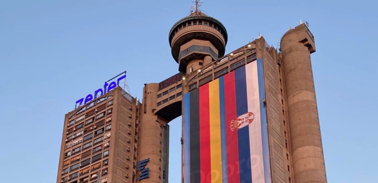 Beograd je spreman da dočeka kancelarku Angelu Merkel, a na Zapadnoj kapiji Beograda, na kuli Geneks, okačene su nemačka i srpska zastava.