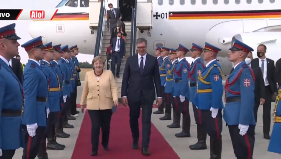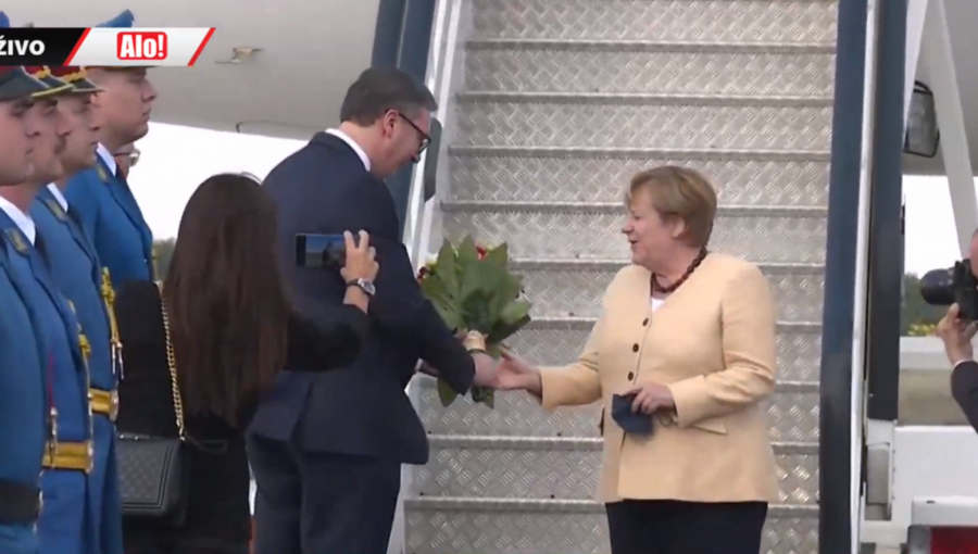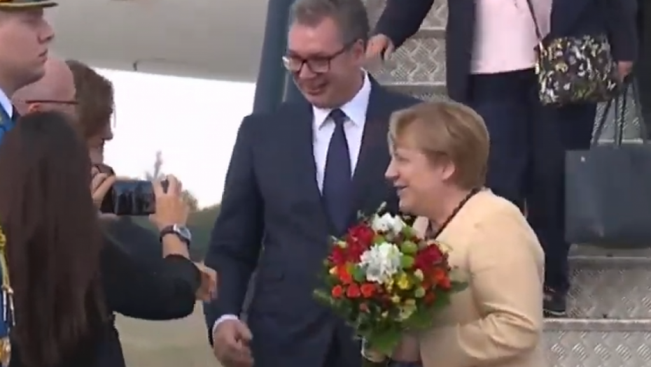 Vučić je nemačku kancelarku dočekao na aerodromu, poklonio joj je buket cveća, a onda otpratio do službenog automobila kojim se uputila ka Palati Srbija, gde će se odvijati sastanci.