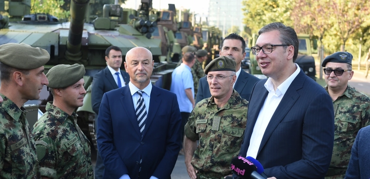 Predsednik Srbije Aleksandar Vučić je tokom obilaska vojne opreme i mašina istakao da su svi pripadnici Vojske Srbije dokazali koliko vole i bore se za našu zemlju, ali i porazgovarao sa pripadnicima vojske.