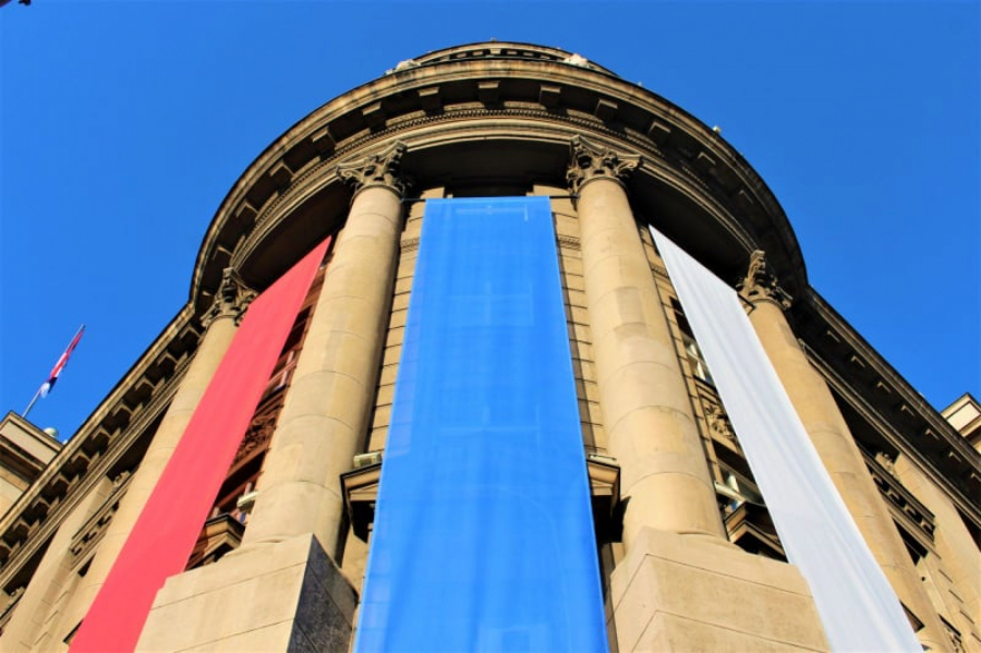 Ministarstvo spoljnih poslova posebno se istaklo, ističući boje srpske zastave celom visinom zgrade.