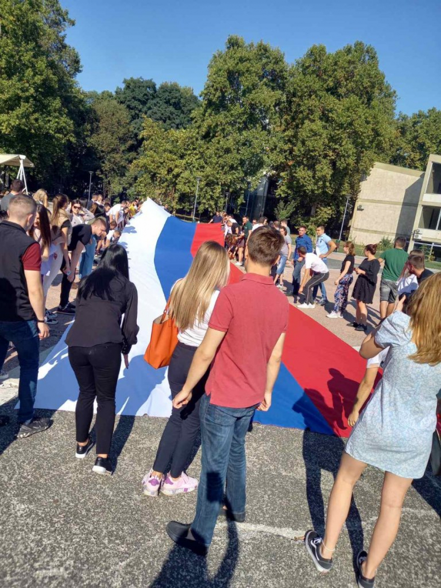 Mladi folkloraši su u isto vreme išli ulicama u narodnim nošnjama, klicali Srbiji, dok je iznad njih leteo policijski helikopter sa velikom trobojkom.