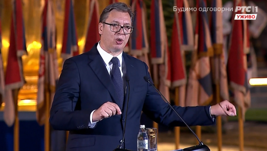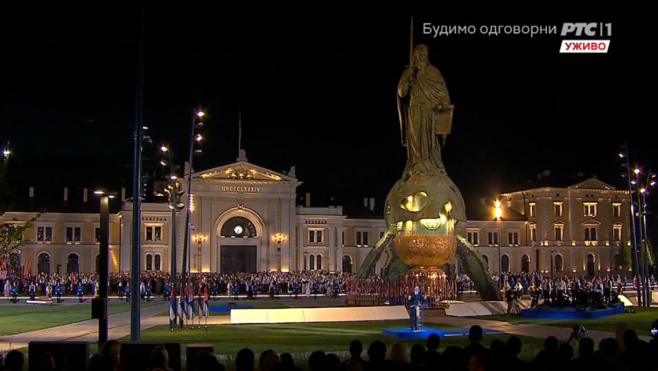 - I kao što se mi ponosimo precima koji su za slobodu davali živote, tako sutra naši potomci treba da se ponose nama, koji ih učimo kako se za slobodu živi i kako se, u slobodi, živi. I treba da ih naučimo kako se pamti, i kako se, samo svojom voljom, zaboravlja. Kako se zaslužuje dostojanstvo, i kako se poštuje temelj. A temelj jeste to ime, Srbija, pod kojim su toliki nepoznati sahranjeni. I ta zastava, u koju su utkali svoje živote, da ostanu prepoznati. I slava, Otadžbina, koja svoju decu vidi, čuje, i pomaže, ma gde ona bila. Temelj je i ovaj praznik, praznik našeg identiteta, naše istorije, ali i naših različitosti koje, opet, daju i slavu i bol u prošlosti, i jasan plan za budućnost. Temelj je taj svakodnevni plebiscit na kojem biramo da budemo narod, nacija, u punoj i ostvarenoj slobodi. Živela Srbija! - rekao je predsednik Srbije Aleksandar Vučić.